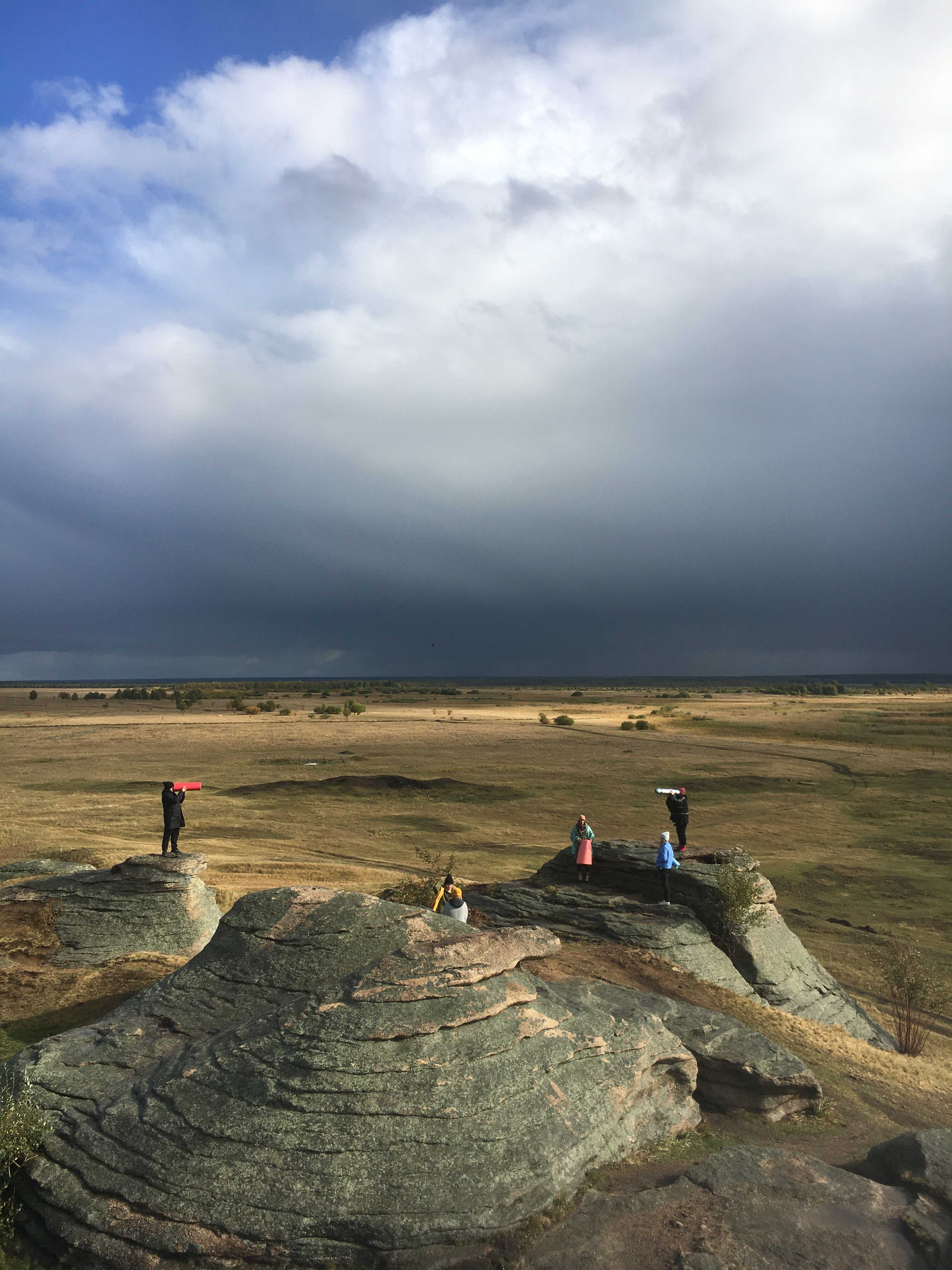 We just reached a beautiful lake to fly on a drone around antient stones.